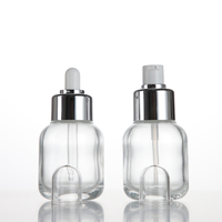 透明丸型空ガラスドロッパーボトル厚底シルバーリングスキンケア用セラムエッセンシャルオイル40ml